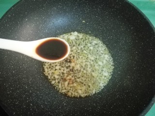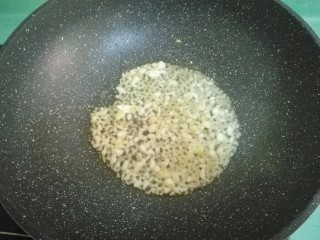 锅中加少许油,放入蒜蓉和姜末,小火煎