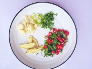 切片,切末,蒜切碎,辣椒切圈。