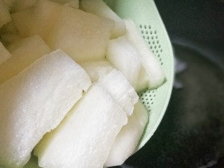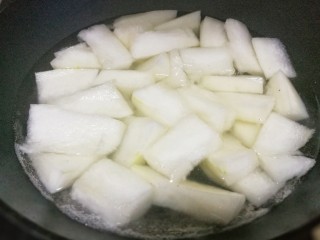 锅中烧开水倒入冬瓜。