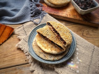将包好的饼坯按扁,一面薄薄刷一层清水。