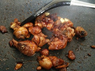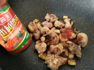 炒到表面焦焦的,番茄沙司融化粘满鸡块上就可以