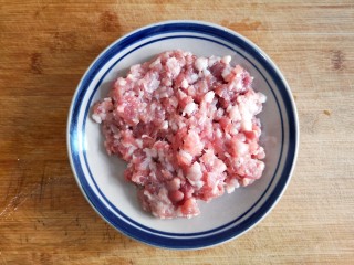 锅里留底油,倒入肉末,大火炒干肉末的水份,转小火将肉末炒香(可以将肉末炒的稍微干一点,口感会好,也会逼出五花肉里的油脂)。