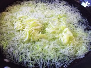 锅内烧开水,放入萝卜丝焯水约10秒钟