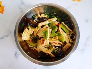 倒入做好的凉拌汁,拌匀。