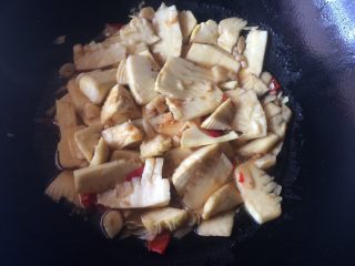 锅热下与辣椒爆香,属于比较吸油的东西,动物性油脂能帮助春笋更加的美味