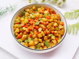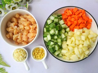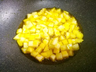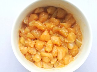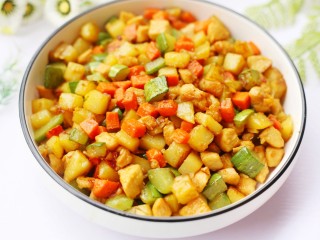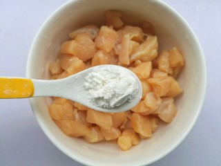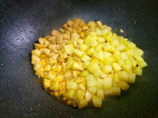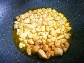 然后加入鸡胸肉炸至变色捞出。