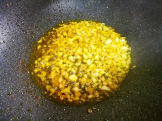 另起锅热油中加入姜蒜末爆香。