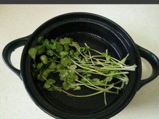 香菜铺在盘子上,盛出鱼装盘