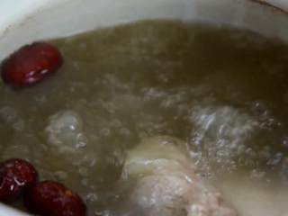 1个半小时后加入几颗红枣、按照个人口味加适量盐,再炖半小时。