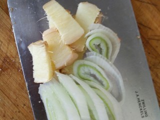 青洗净后切菱形片备用