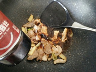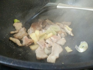 热锅凉油,放肉片,炒至颜色发白