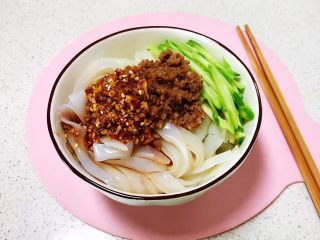 加入碗汁,瓜丝肉末凉皮就做好了~