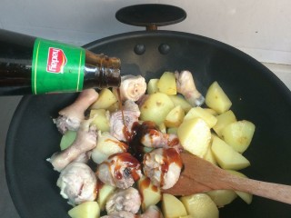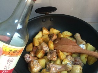 放入鸡腿一起炒