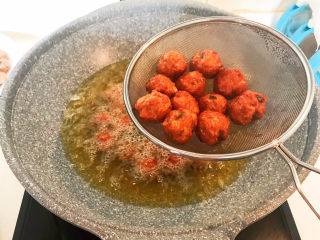 炸至肉丸表皮酥脆即可