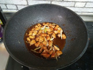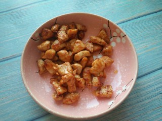 再加炸好的鸡肉,炒匀即可