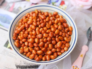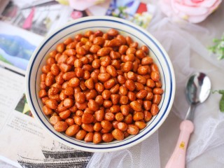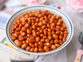 然后让花生米在余温下继续炸1分钟捞出。