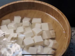 另起一锅烧水,加入少量盐,下豆腐,待水再次烧开,捞起豆腐,放入凉水