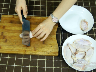 1、将鸡翅两面各斜切三刀。