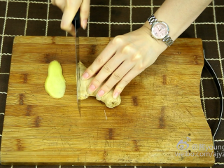 5、切取3片姜片备用。