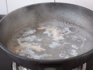 鲜清洗干净,剔除虾线,放在开水里汆烫一下马上捞出来备用。