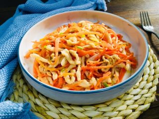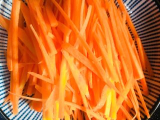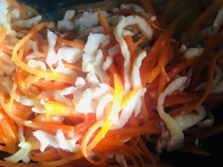 烧热放入胡萝卜丝翻炒至变软