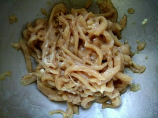 加入一勺,一勺,一勺淀粉抓匀,腌制一会儿