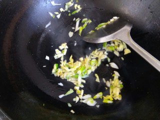 把锅洗干净,烧干,放入适量植物油,爆香葱姜蒜