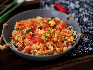 舀上番茄鸡蛋,撒上葱花