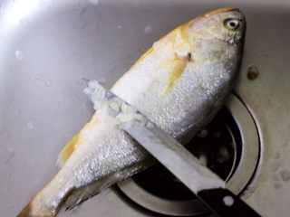 用刀先去除的鱼鳞后洗净黄花鱼备用