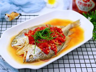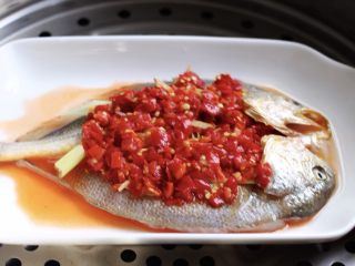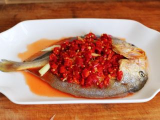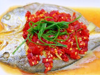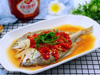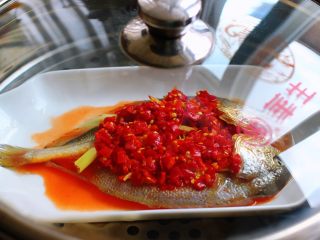 把烧热的花生油浇到黄花鱼的剁椒酱上即可