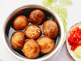 准备好食材,清洗干净,香菇盐水浸泡10分钟。