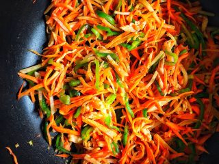 混合均匀即可 (不用炒太久 以防青椒丝变老 口感和色泽不好看)