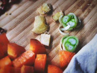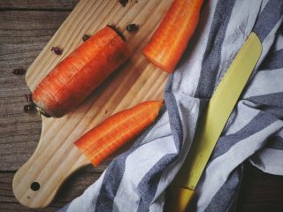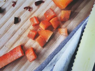 胡萝卜从中间先横着切一刀,再竖切一刀