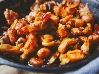鸡肉性温,益气养血,含有较多的不饱和脂肪酸,降低胆固醇,活血脉 宫保鸡丁,是一道闻名中外的特色传统名菜。鲁菜、川菜、贵州菜中都有收录,原料、做法有差别 鸡肉的鲜嫩配合花生的香脆与爽口的黄瓜和胡萝卜,红而不辣、辣而不猛、香辣味浓 本着我一贯健康低脂的原则,依然是无油但味道却不打折,做法简单快手,好吃营养不怕胖!
