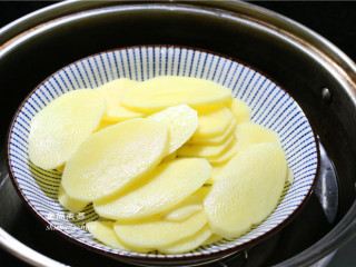 放入蒸锅中,大火蒸15分钟,用筷子能轻松压碎证明土豆已经软烂。