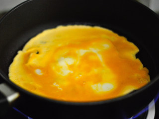 锅里倒入少许油,烧热后倒入蛋液,待蛋液慢慢凝固