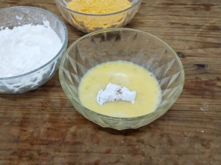 再放入蛋液碗中转一圈,鸡蛋加淀粉的组合会形成一层无形的酥皮,吃起来才好吃