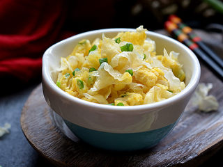银耳的营养非常丰富,除了具有滋阴润肺、补气补脑等功能外,还具有排毒养颜、嫩肤、延年益寿的功效,因此,深得女性朋友的钟爱。 银耳的做法通常都是以煮、炖居多,这样做出来的银耳一朵一朵的像花一样,看着都漂亮,吃着也滋润。不过,今天要给大家分享的是另外一种做法,就是与鸡蛋一起炒,而且还是利用有可能被丢弃的银耳碎渣,这样做既不浪费,又得到了美味。并且做法也特简单,分分钟就能搞定。银耳的脆,鸡蛋的滑嫩,吃起来不要太香哈。