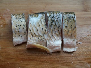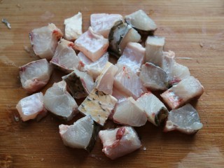 半只去头去尾,剁成3厘米左右宽的鱼块