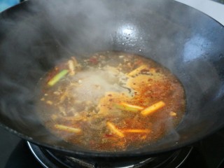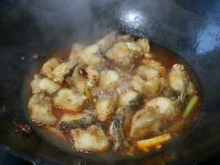接着倒入鱼块,大火烧开后,用小火焖至汤汁收紧
