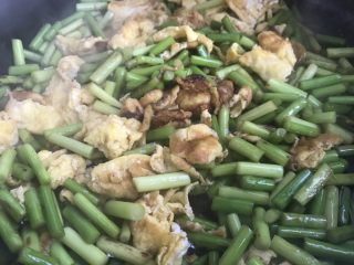 翻炒均匀,七分熟后加入盐,耗油,再翻炒均匀焖锅一会儿