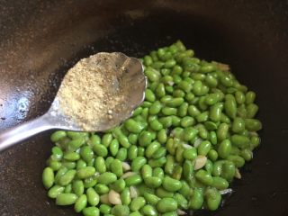 翻炒至毛豆变更绿