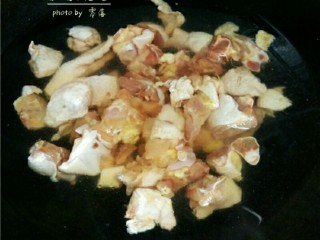 鸡肉洗净后,放入清水里,调入适量,煮沸;