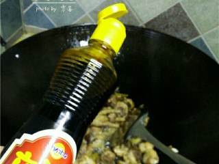 放入姜片,葱白,,炒香;