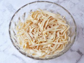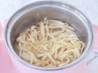 锅中烧开水,再把豆皮放入焯水