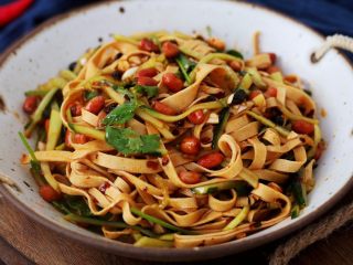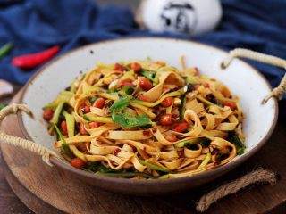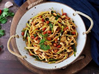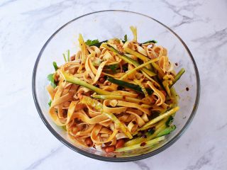 再加入青瓜丝、葱、香菜,再淋上刚才调好的酱汁