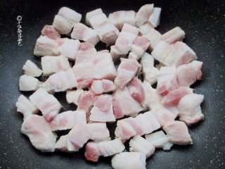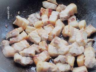 五花肉煽炒熟至出油,焦黄焦黄就可以了