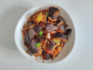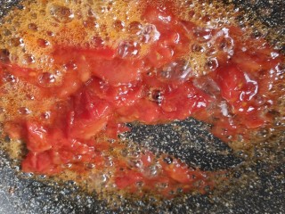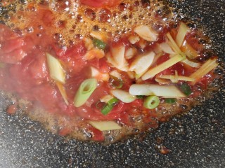 翻炒一会儿,放入调好的酱汁。(一勺,半勺,半勺)