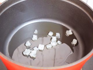 锅中倒入适量的食用油烧热,放入,转小火翻炒至冰糖融化变成焦黄色