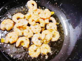 加入虾仁,翻炒